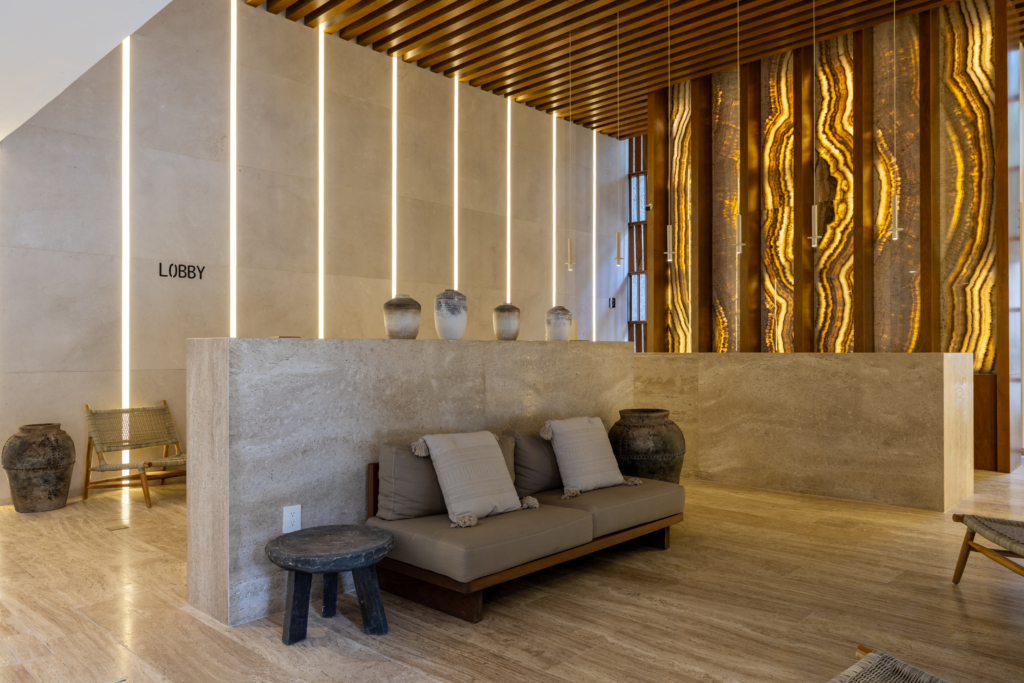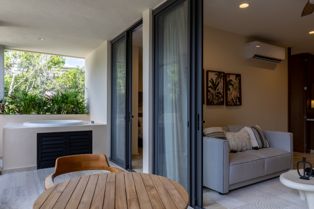 The development incorporates durable construction systems and premium materials, including travertine marble floors, regional stone accents, and natural wood carpentry, creating elegant spaces that reflect the natural aesthetic that defines Tulum.